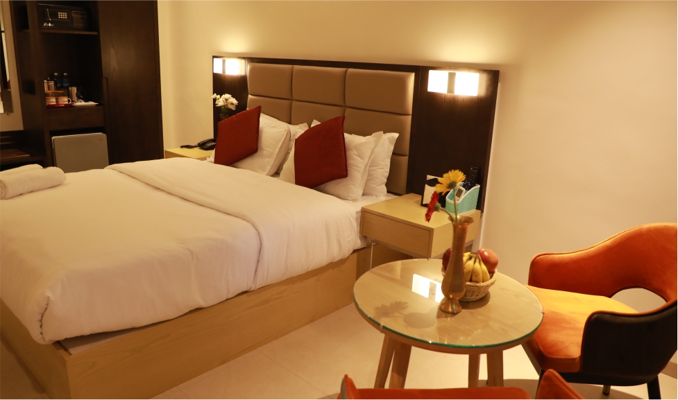 These rooms come with luxurious bed and linen, lovely ambiance, large screen TVs, high-quality A/C, with nice view! The room features an attached washroom and a premium soft comfort duvet for your better-staying experience.