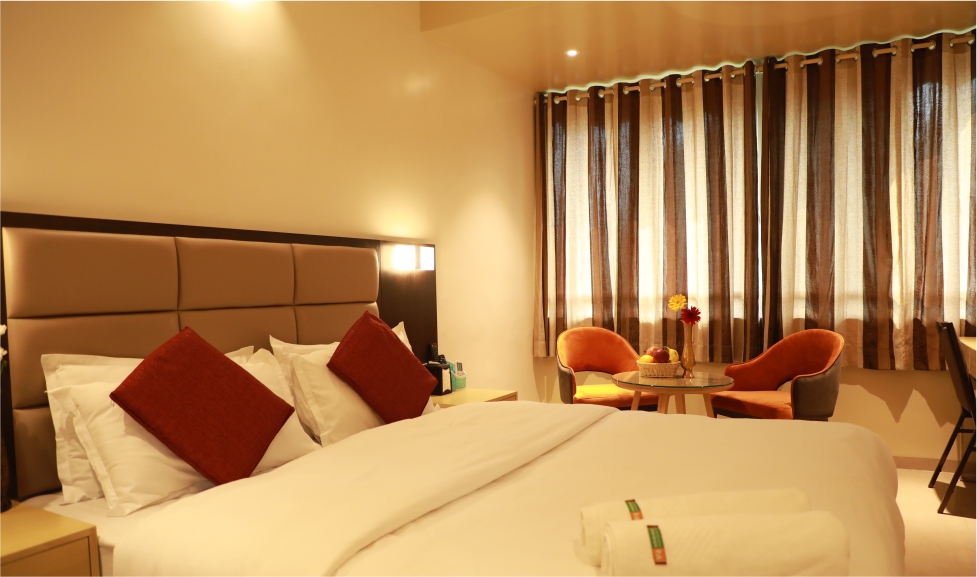 These rooms come with luxurious bed and linen, lovely ambiance, large screen TVs, high-quality A/C, with nice view! The room features an attached washroom and a premium soft comfort duvet for your better-staying experience.